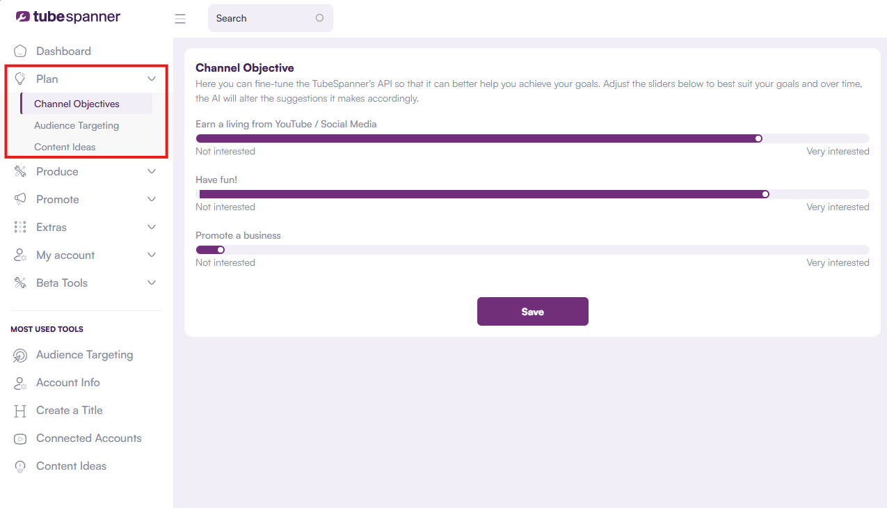 5. You may have already done your channel objectives and have gotten a channel analysis during the onboarding, but you can fine edit it to further fit your need. Click here if you need to go through this steps in detail.